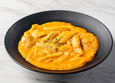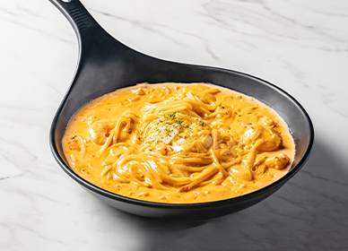 튀김닭꼬치를 곁들여 트렌디한 새우로제파스타를