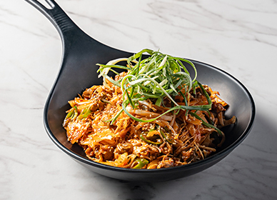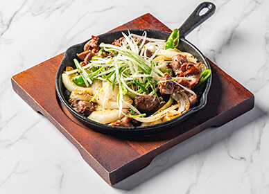 새콤한 쫄면을 곁들여 추억의 옛날통닭을 즐기고
